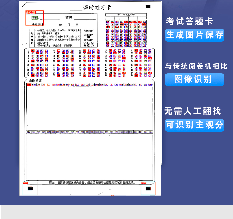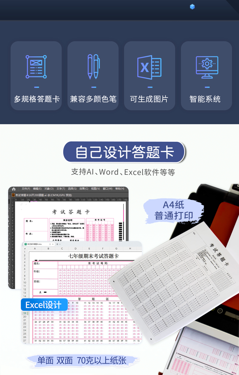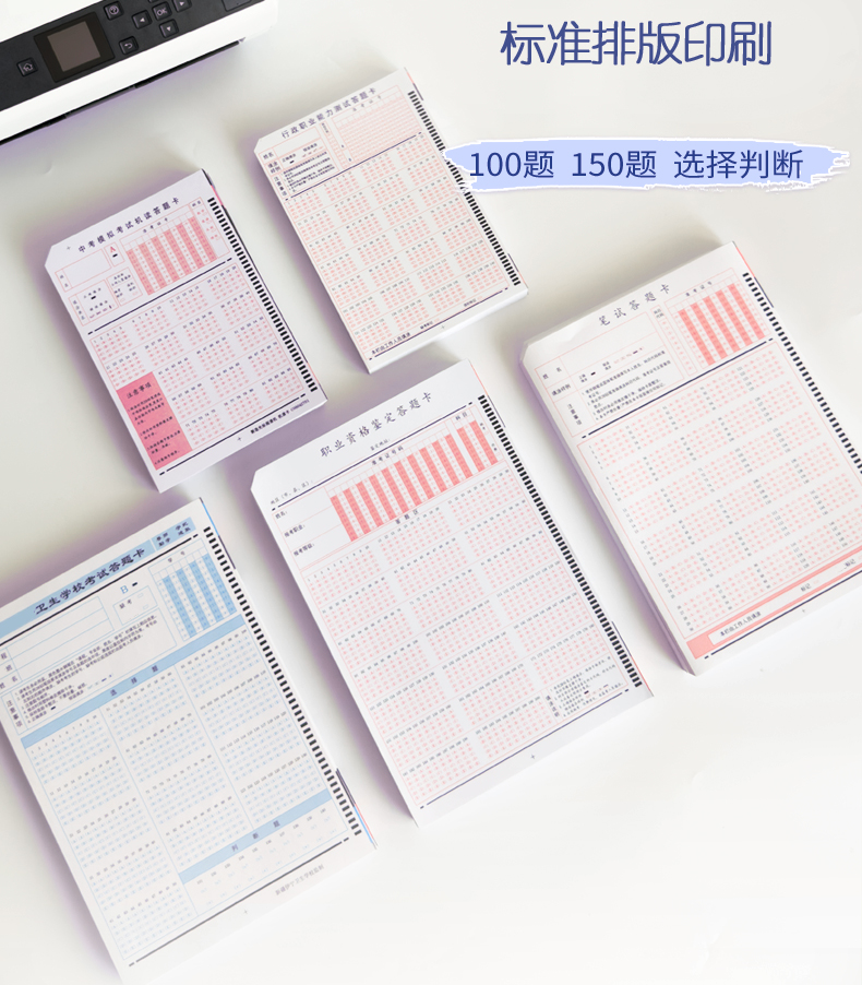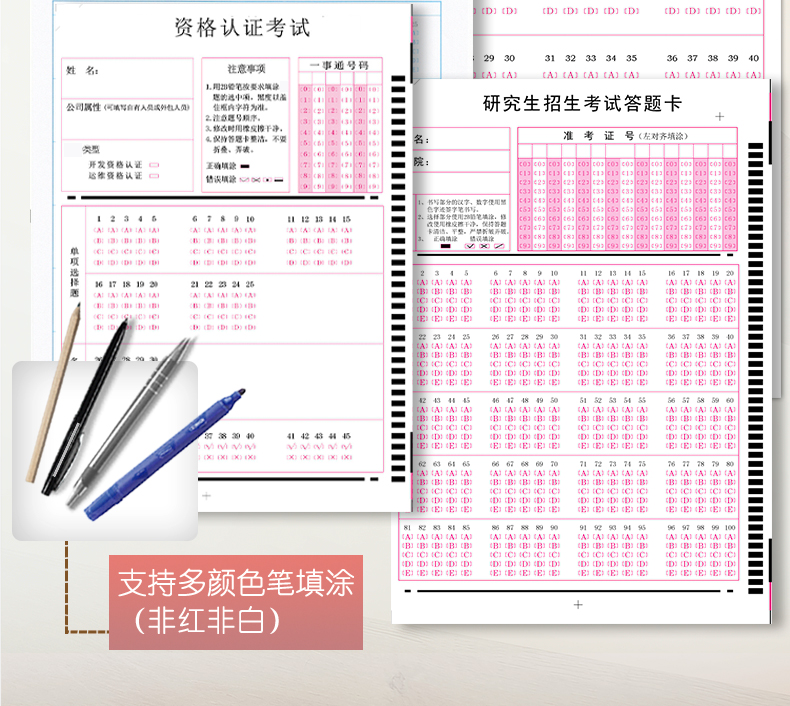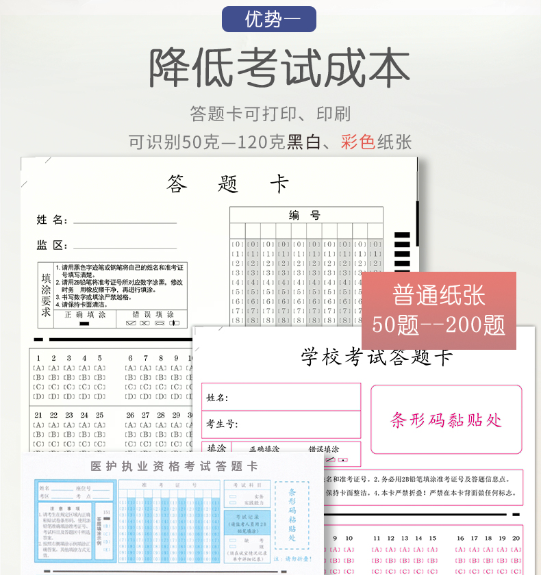 4、支持60克以上紙張,支持各種顏色印刷、打印、復印的答題卡