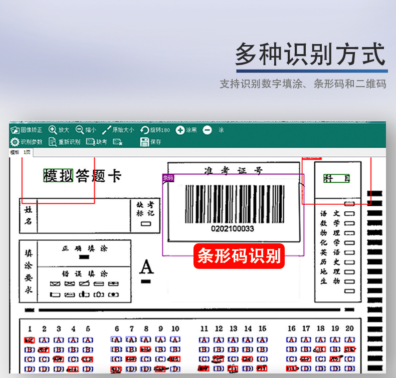 9、*支持填涂考號,支持條形碼、二維碼識別學生信息